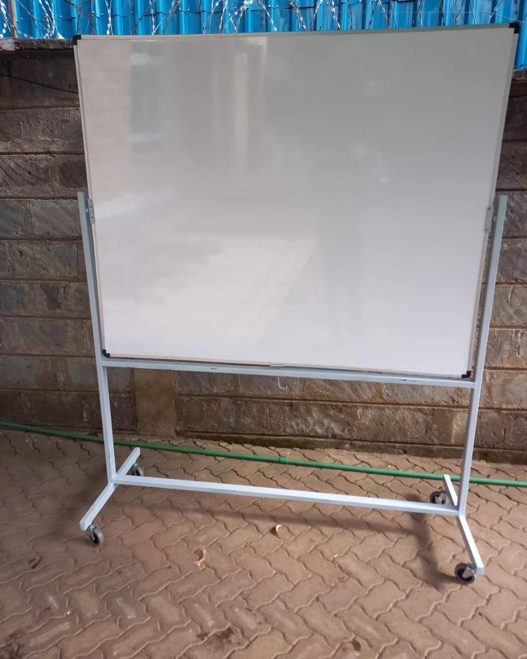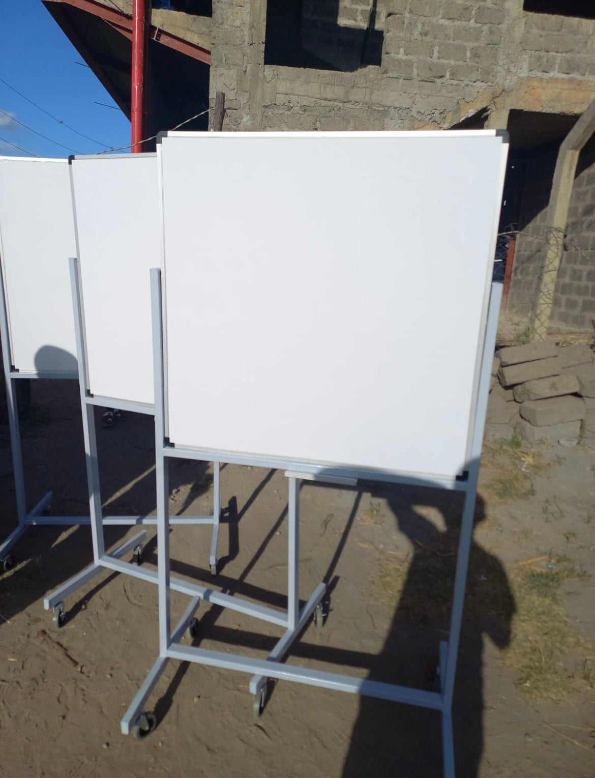Professional portable dry erase whiteboard with rolling stand for ultimate mobility. Perfect for classrooms, offices, conference rooms, and training facilities in Kenya. Available in sizes from 3x2 to 8x4 feet. Features smooth magnetic surface, sturdy wheels for easy movement, and locking casters. Custom sizes available on request.