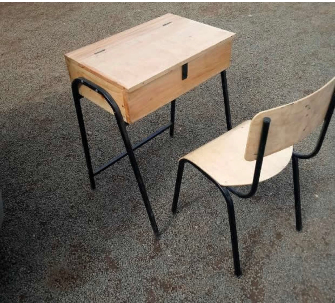 Durable school furniture set featuring desks and chairs with built-in storage lockers for primary and high schools in Kenya. Expertly crafted with quality metal frame and wooden construction for long-lasting educational use. Ergonomic design ensures student comfort during long study hours. Heavy-duty build withstands daily classroom use.
